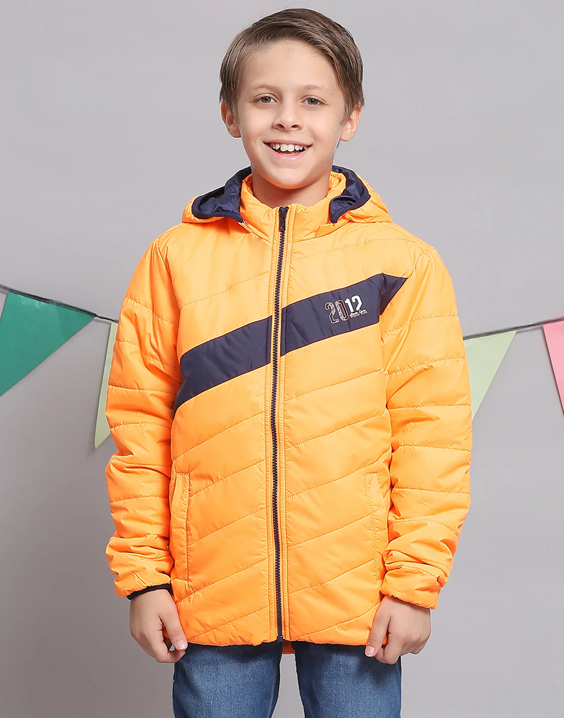 Boys Orange Solid Hooded Full Sleeve Boys Jacket
