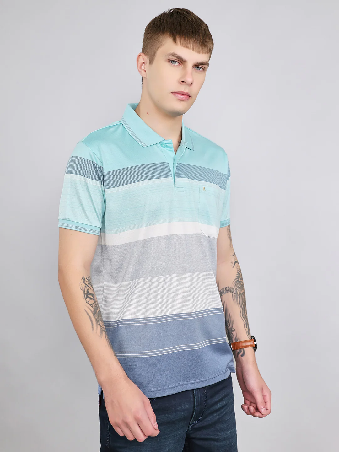 Luxuria Men Sky Blue Printed Polo Collar Half Sleeve T-Shirt