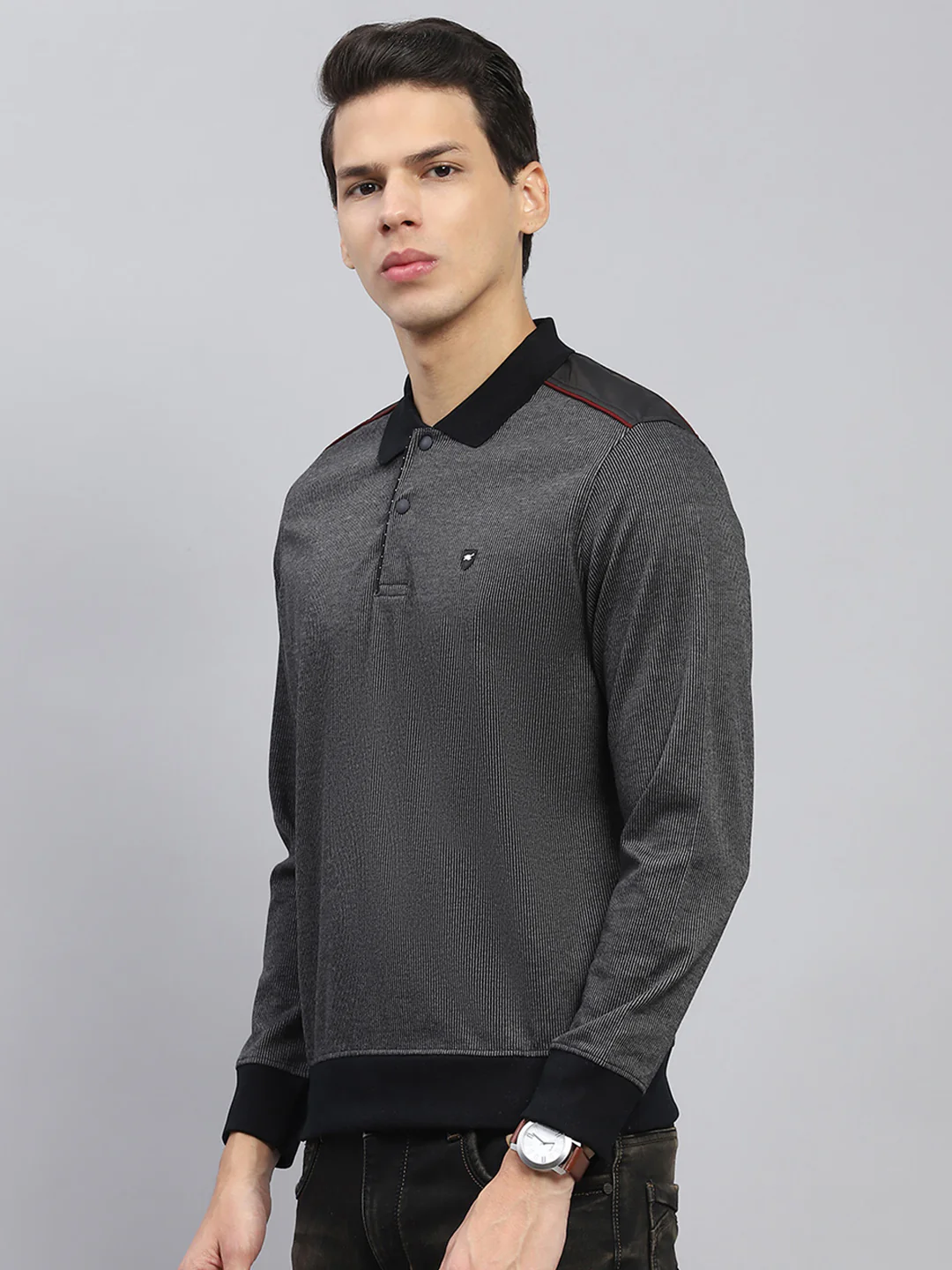 Luxuria Men Black Solid Collar Full Sleeve Winter T-Shirt