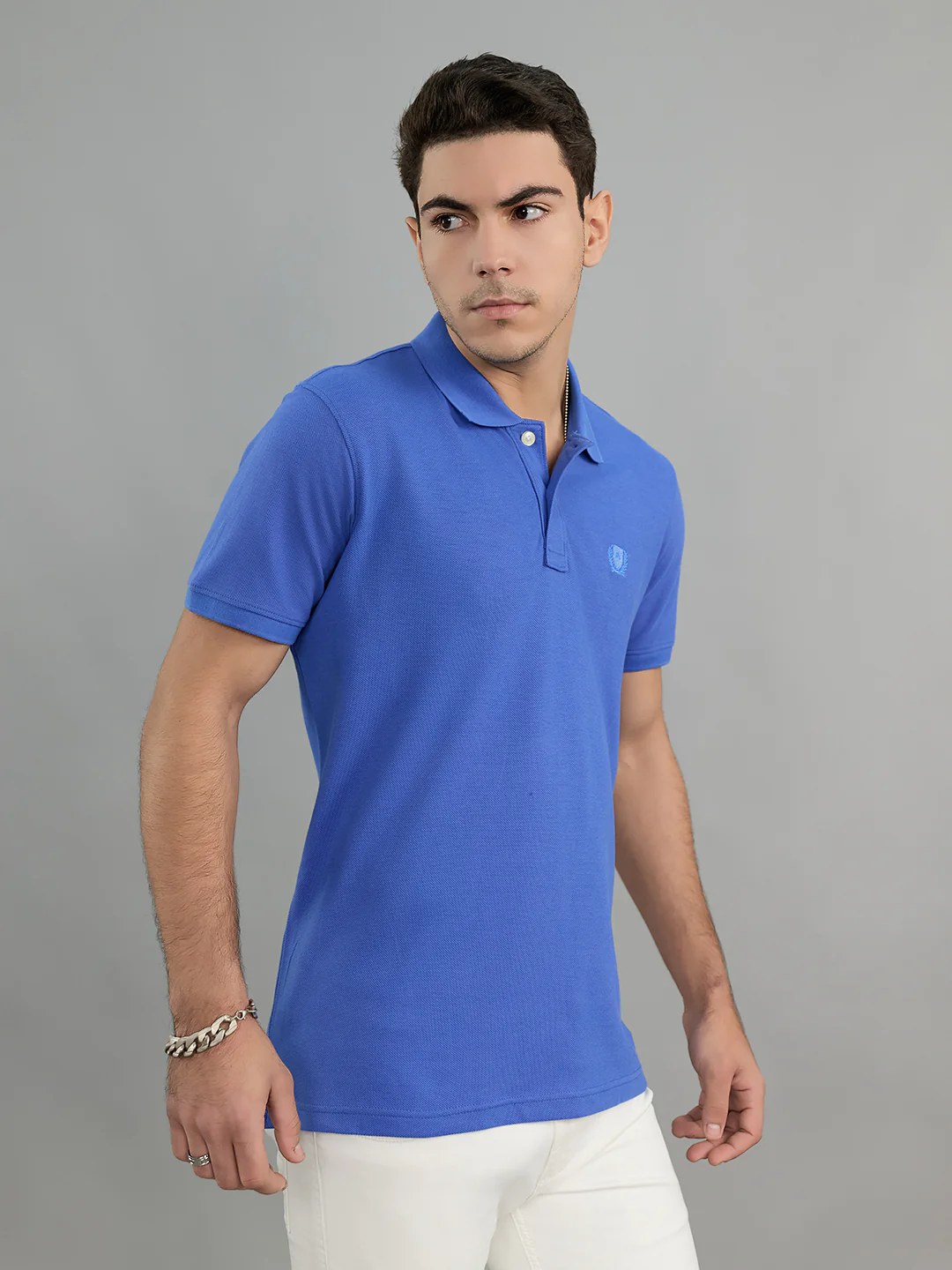 Men Blue Solid Collar Half Sleeve T-Shirt
