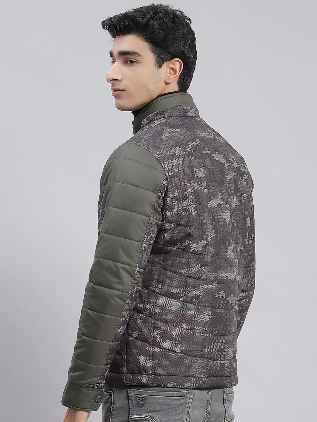 Men Olive Printed Hooded Full Sleeve Jackets