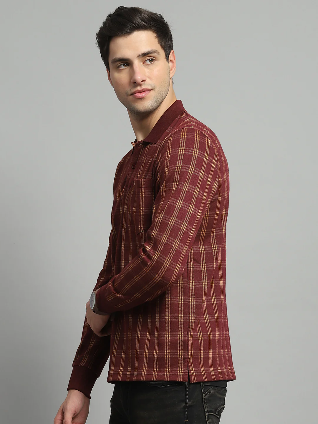 Luxuria Men Rust Check Collar Full Sleeve Winter T-Shirt