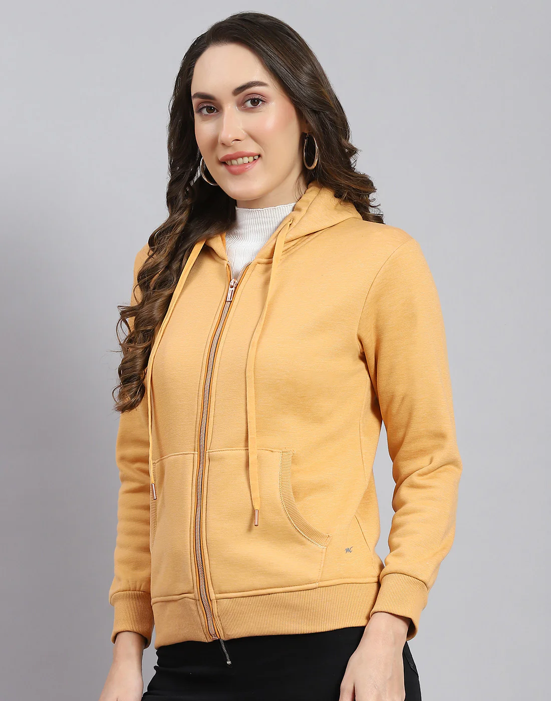 Women Orange Solid Hooded Full Sleeve Sweatshirt