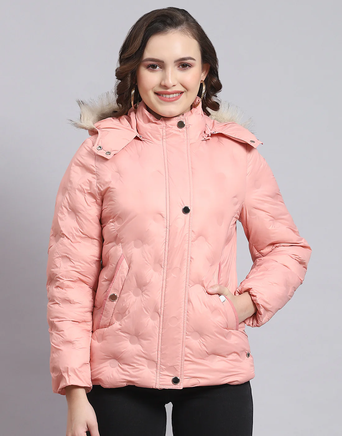 Women Pink Solid Hooded Full Sleeve Jacket